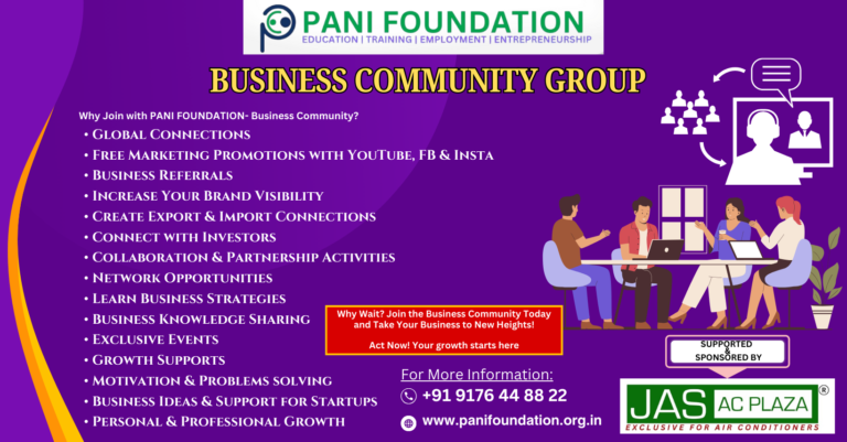 The Pani Foundation Business Community is a free networking platform exclusively for business owners. It helps entrepreneurs connect, collaborate, and grow their businesses by sharing resources, opportunities, and support. This community fosters business networking, partnerships, and knowledge exchange to drive success.